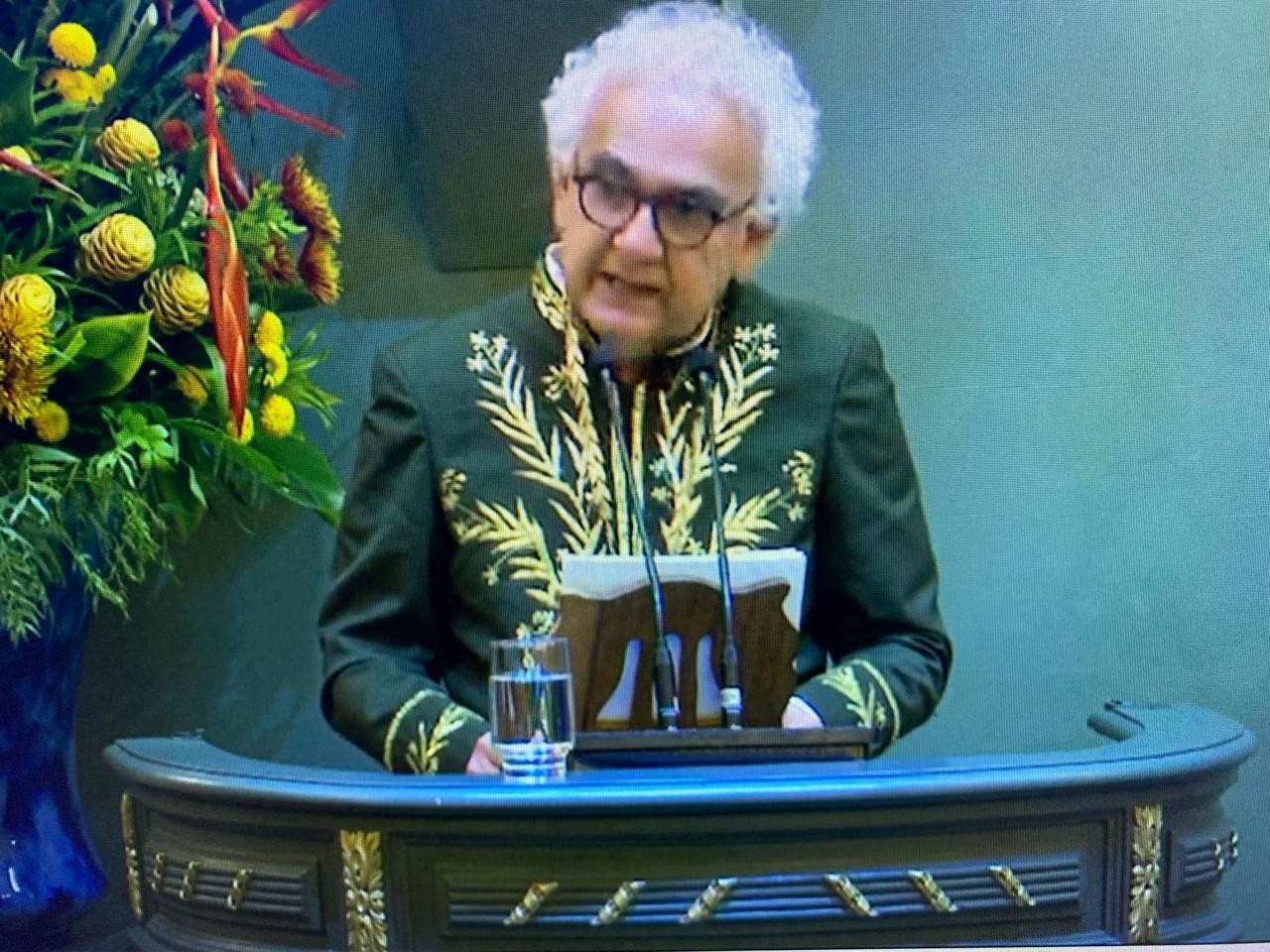 Escritor Milton Hatoum discursa em sua posse na ABL Reprodução O escritor Milton...